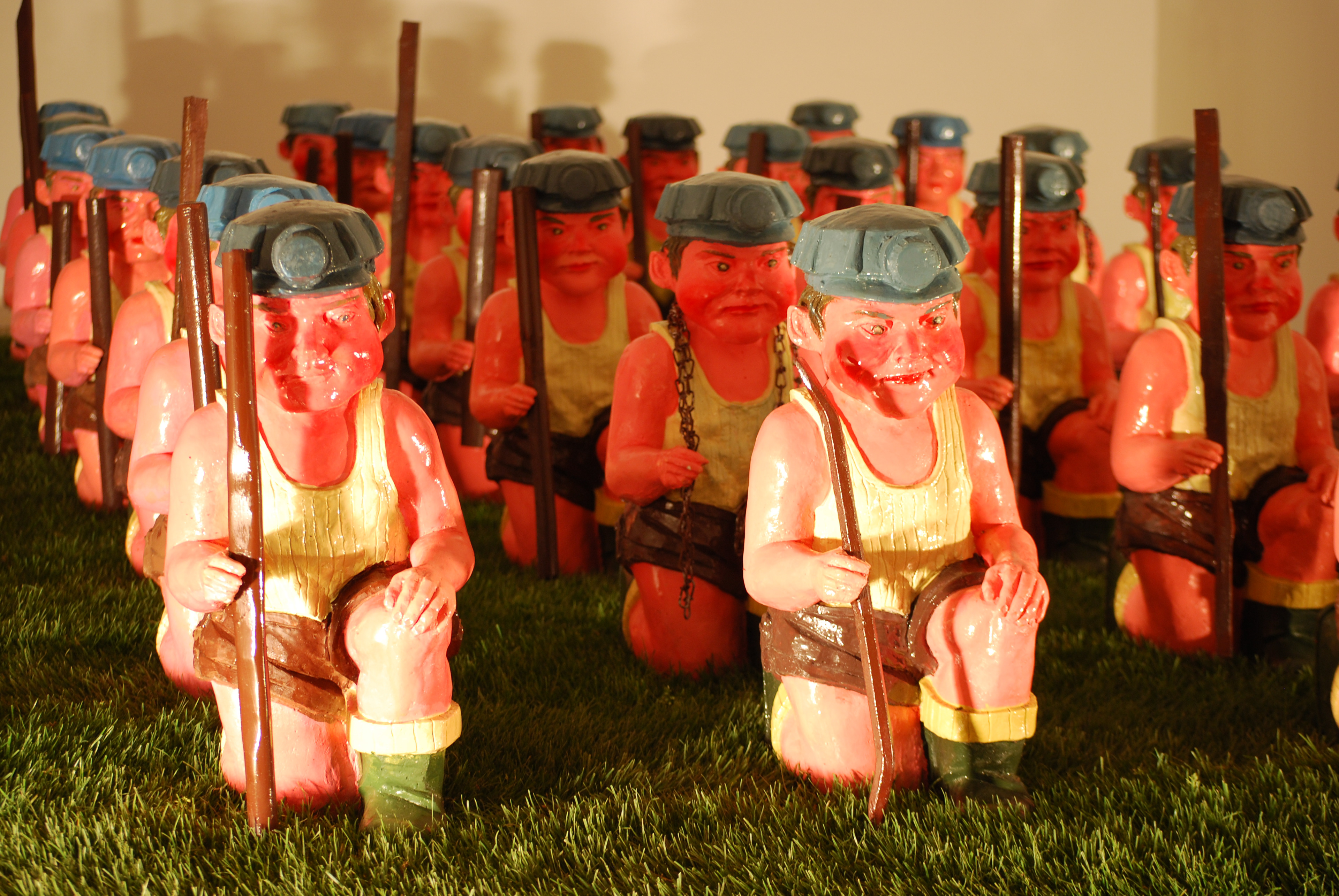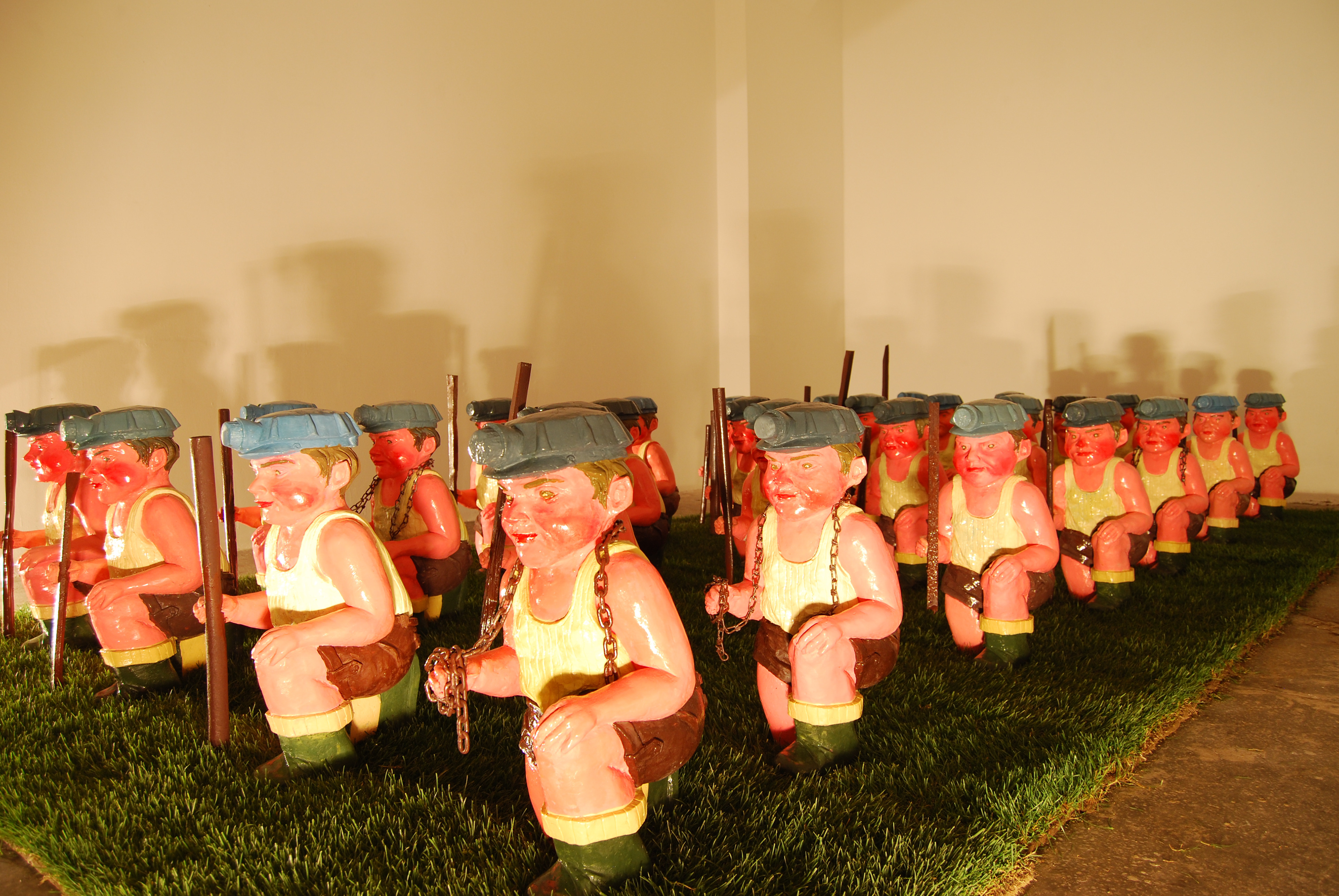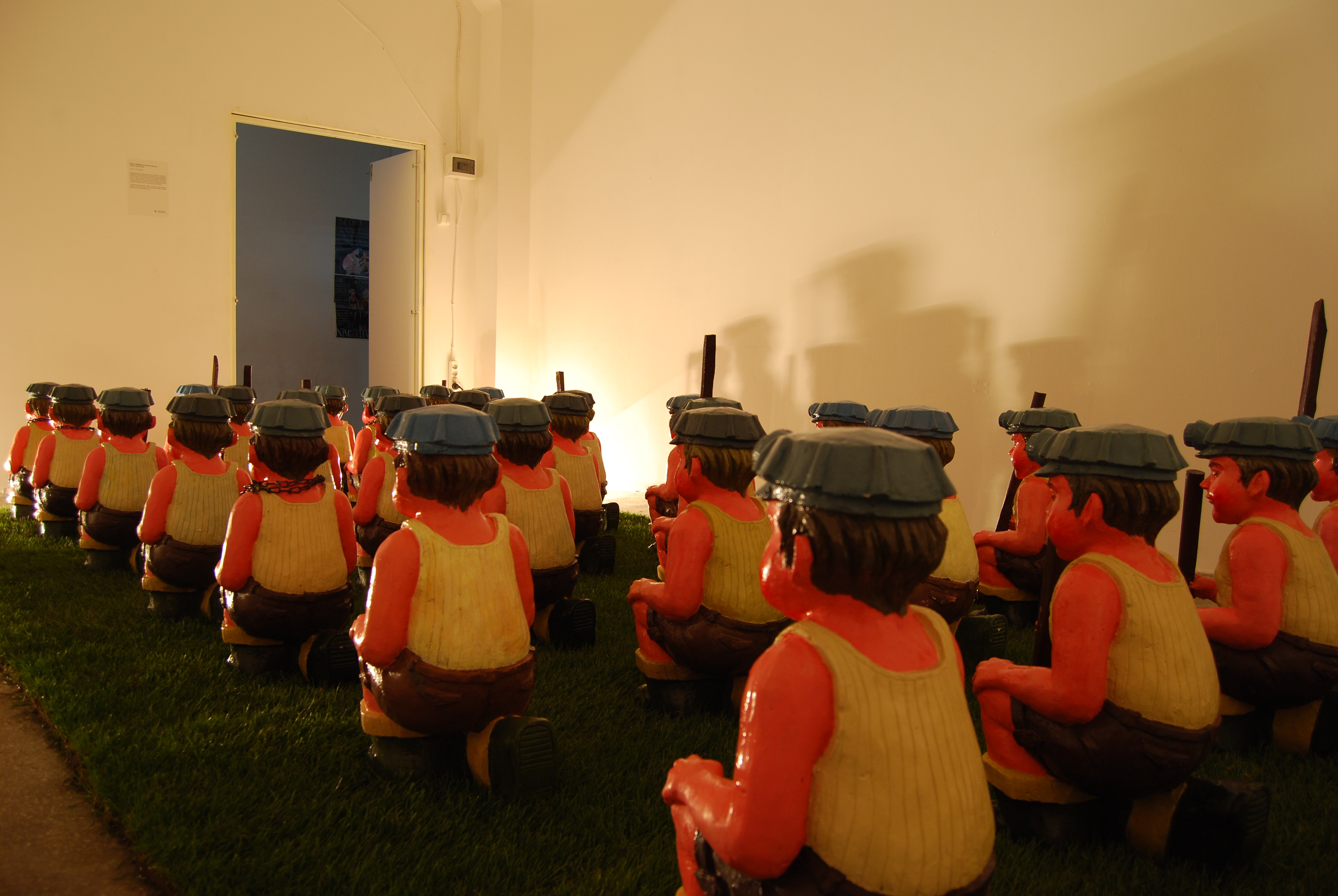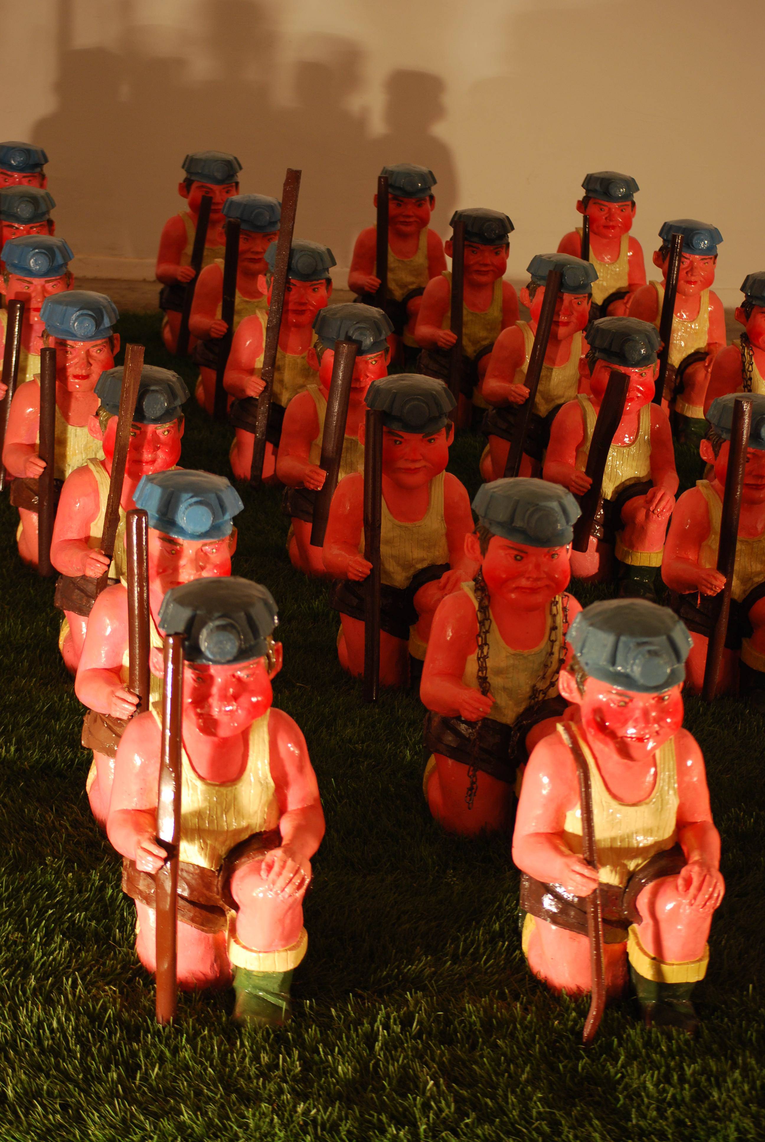 The wounds and the obsessions of the past are revisited in a rhetorical and candid manner. The miner gnome, as an assumed kitsch object, is a new approach of the errors in the 90's.
