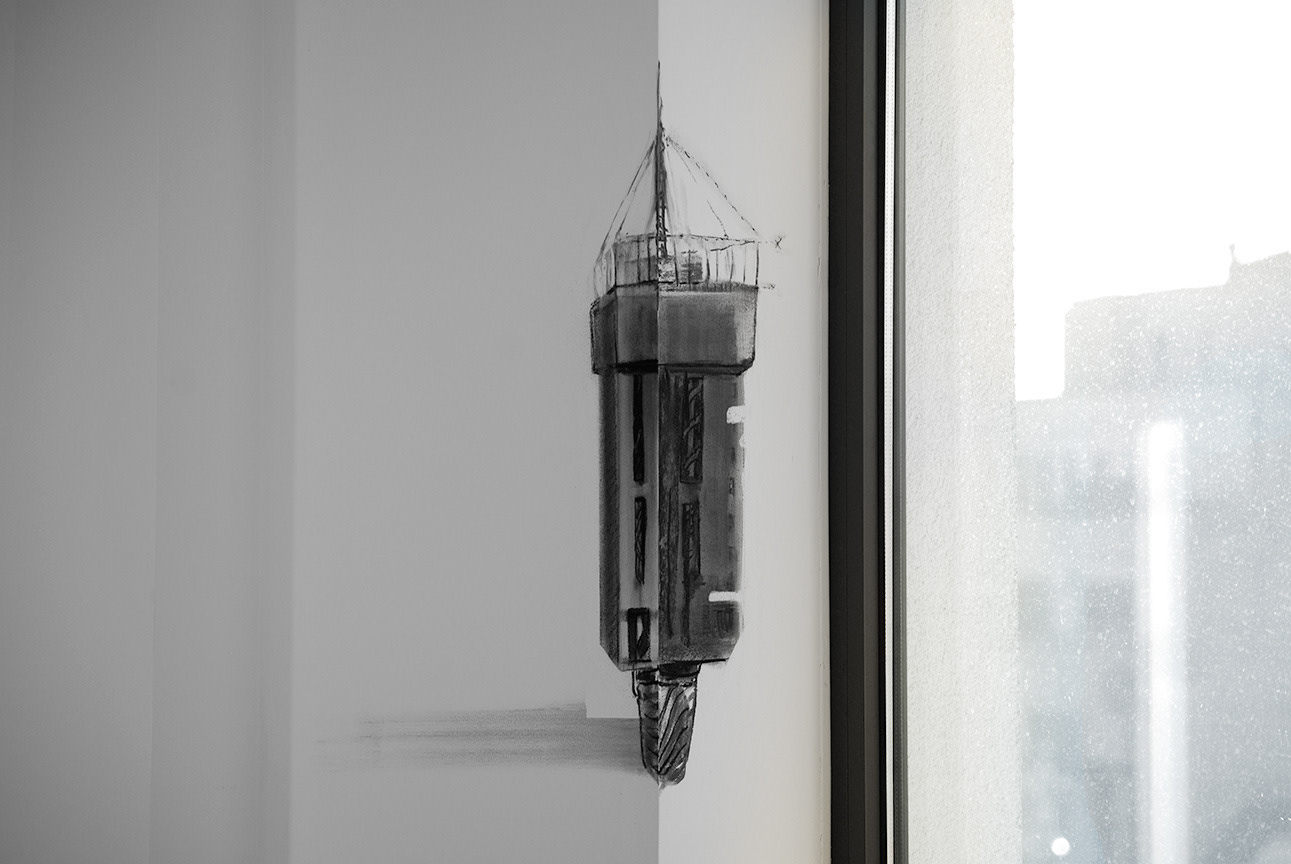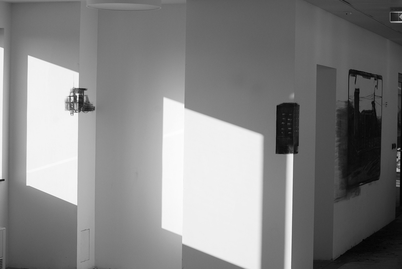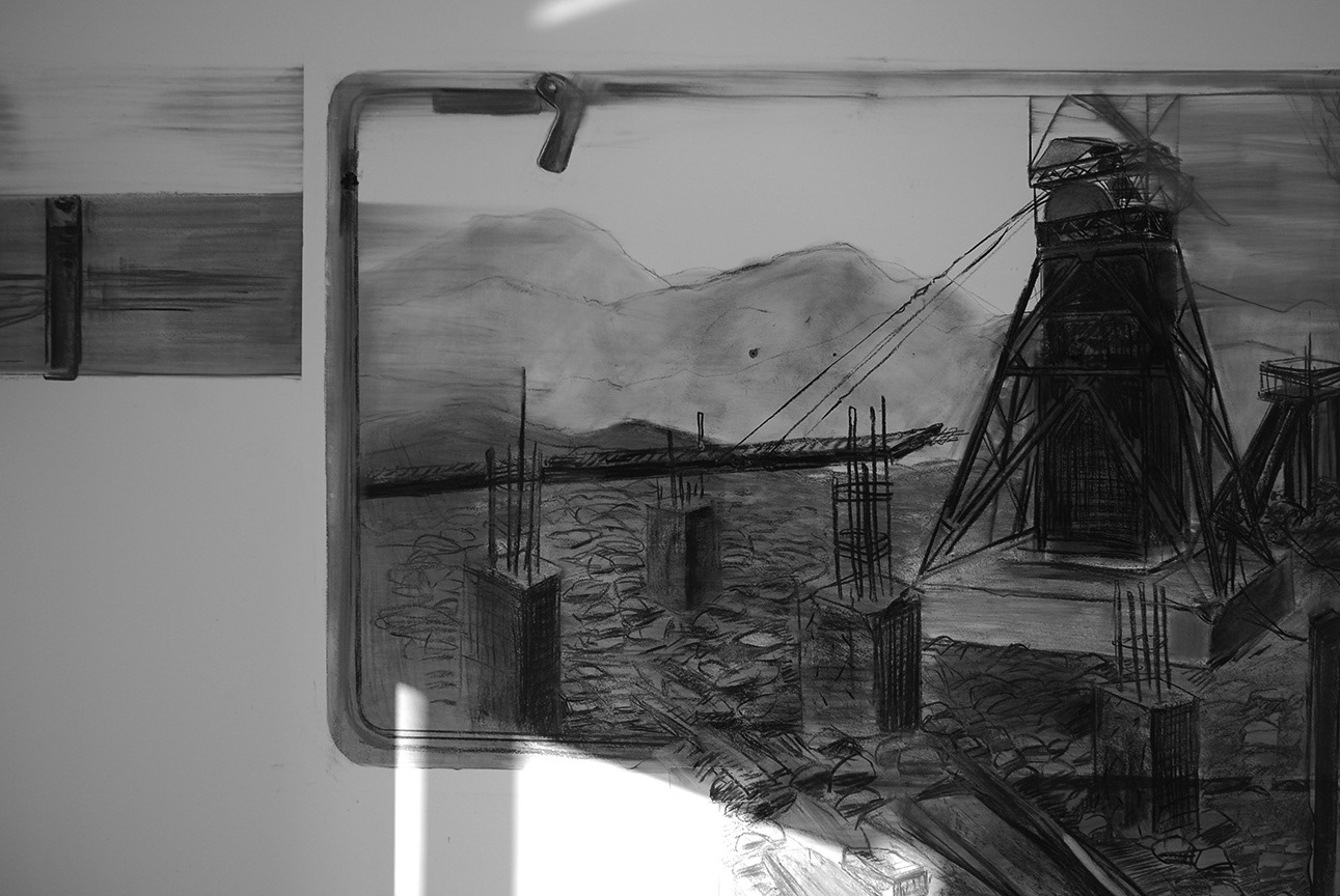 - charcoal drawings on wall -